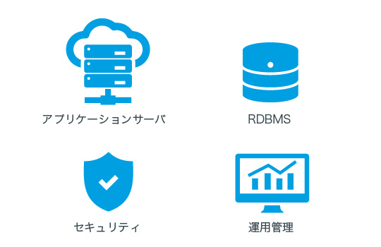 アプリケーションサーバやRDBMSなどのプラットフォームや運用管理環境をマルチベンダー対応/オープンソース対応により最適な構成で提供します。
